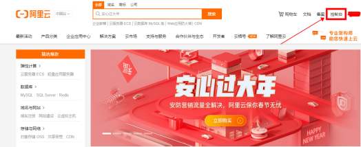 1. 登錄阿里云官網(wǎng)》進(jìn)入控制臺(tái)