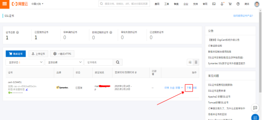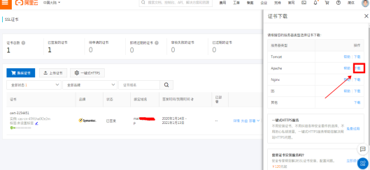 9. 審核通過(guò)后,下載Apache格式的證書文件(壓縮包)提交到對(duì)接技術(shù)人員或者郵件申請(qǐng)上傳證書