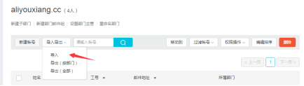 選擇對應的上級目錄下,點擊新建部門(頂級部門都為郵箱的域名,無法修改或刪除)